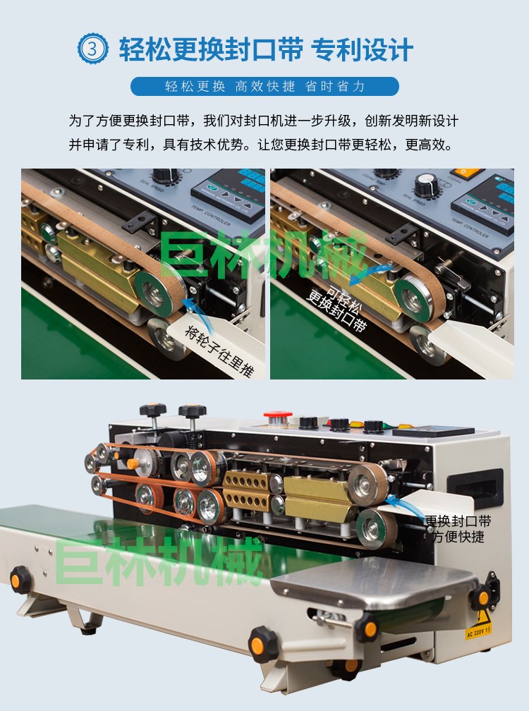 本機是新一代集印碼,封口,連續輸送為一體的自動薄膜封口機,具有印字清晰、顔色可選、即印即干、換字方便等特點。