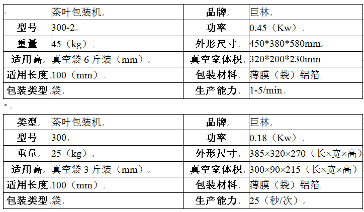 300型3斤茶葉真空包裝機上市使用.該機做到能真空、封口等一體化全自動操作,具有包裝速度快、體積小、低噪音、低能耗,操作簡單等特點。解決了茶葉小包裝真空的一系列煩瑣手工操作問題、節省人力物力。