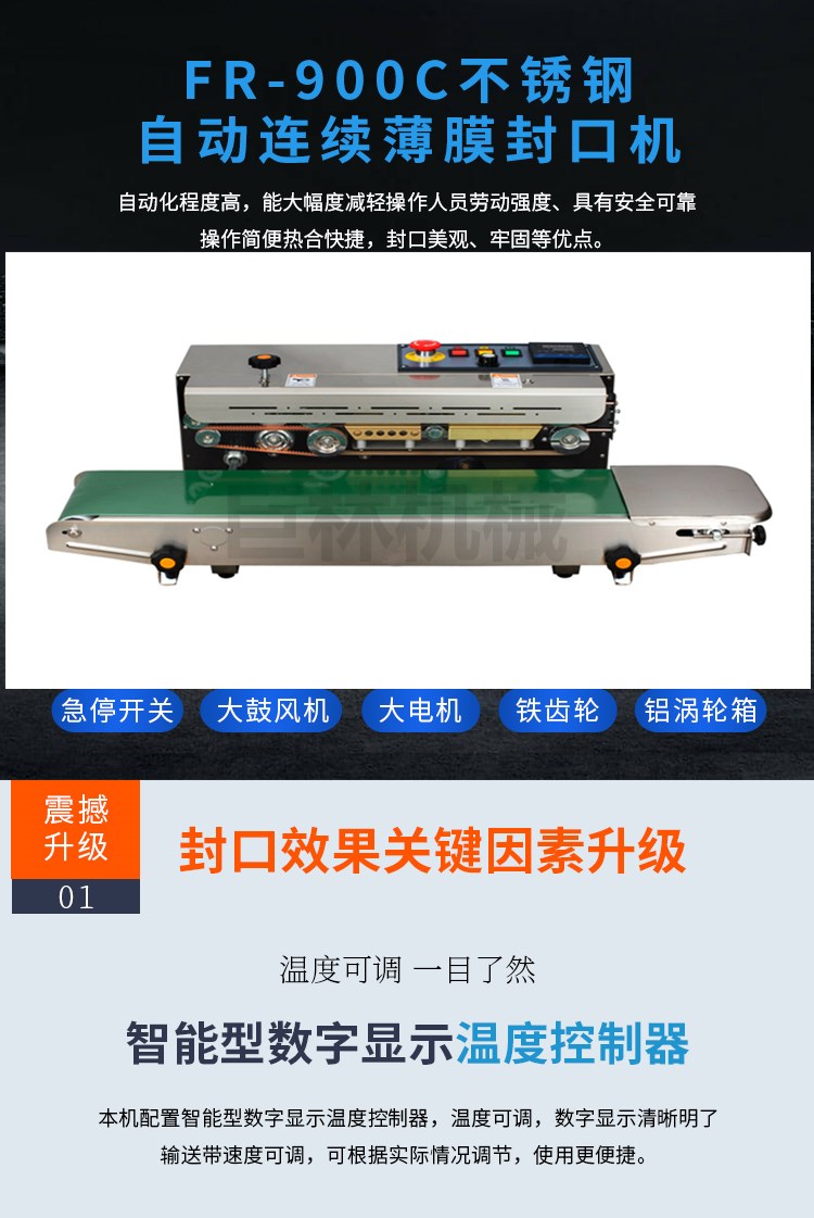 • 自動(dòng)連續(xù)封口機(jī)FR-900C大電機(jī)不銹鋼